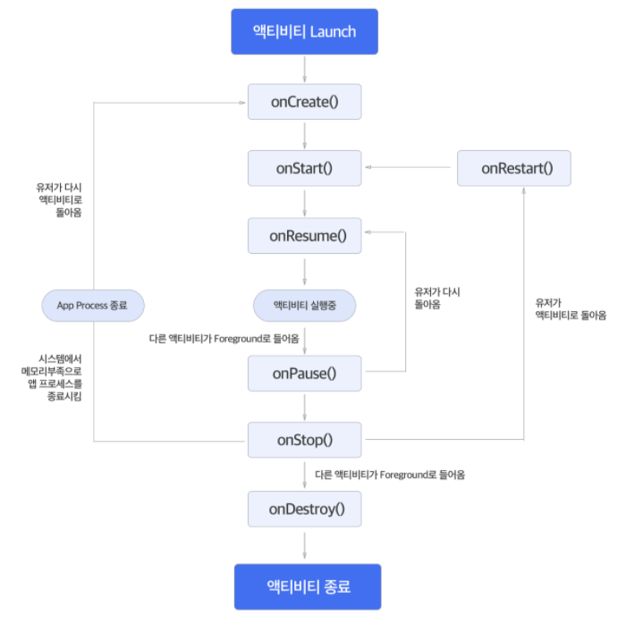 - 실행 완료 시 onStart() / onResume()을 호출