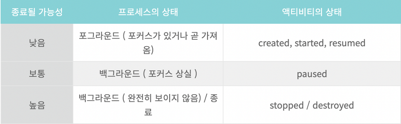 액티비티의 상태에 따른 종료될 가능성